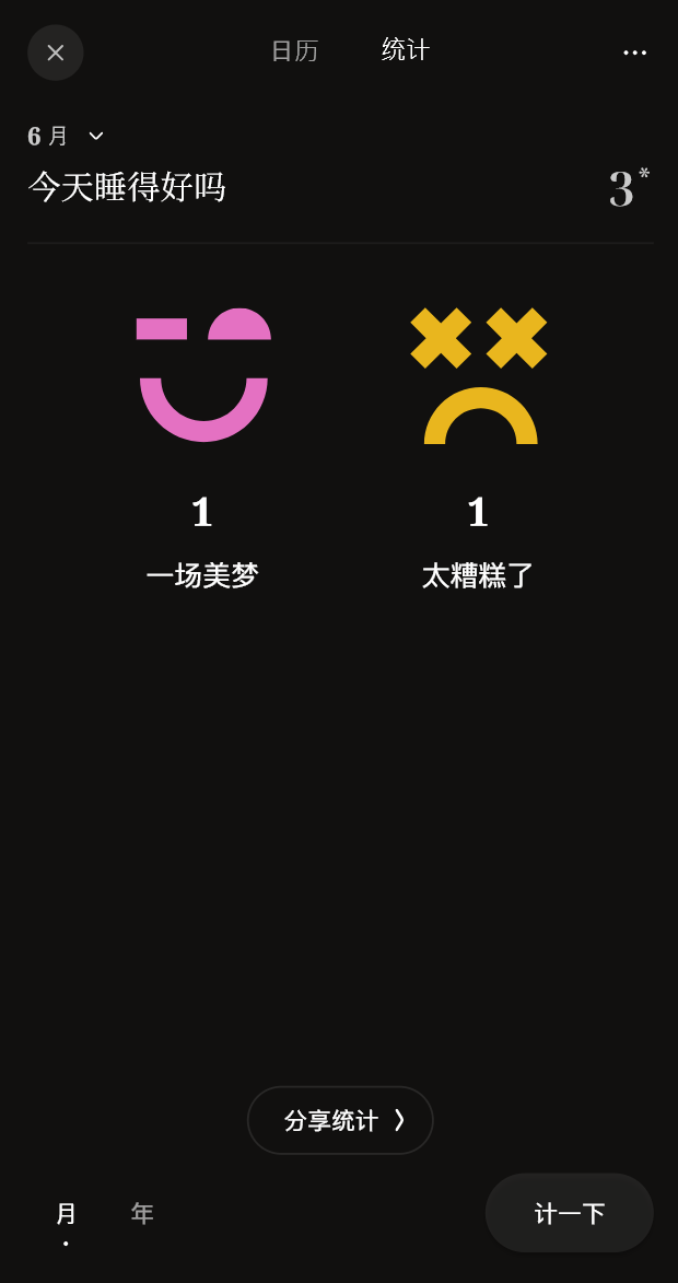 月度和年度的事件统计,让你的每一次记录都有极具美感的呈现,也许在统计里,会发现另一面的自己。